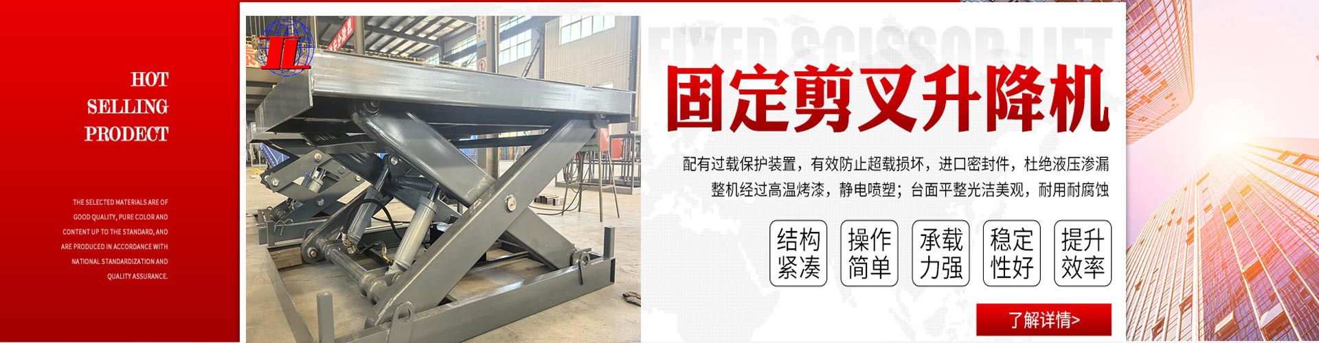 产品液压系统设置防坠、超载安全保护装置,各楼层和升降机工作台面均可设置操作按钮,实现多点控制。产品结构坚固,承载量大,升降平稳,安装维护简单方便,是经济实用的 低楼层间替代电梯的 理想货物输送设备。